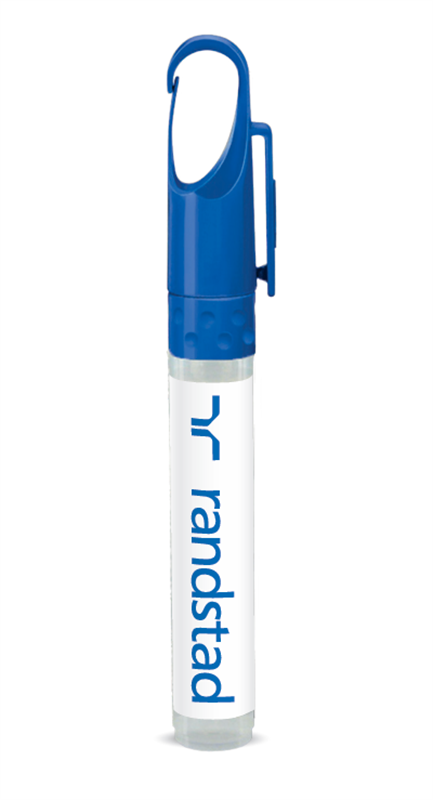 A compact pen-style sanitizer designed for easy use and portability. Digitally printed with the Randstad Horizontal Logo, it's a thoughtful and hygienic promo item.